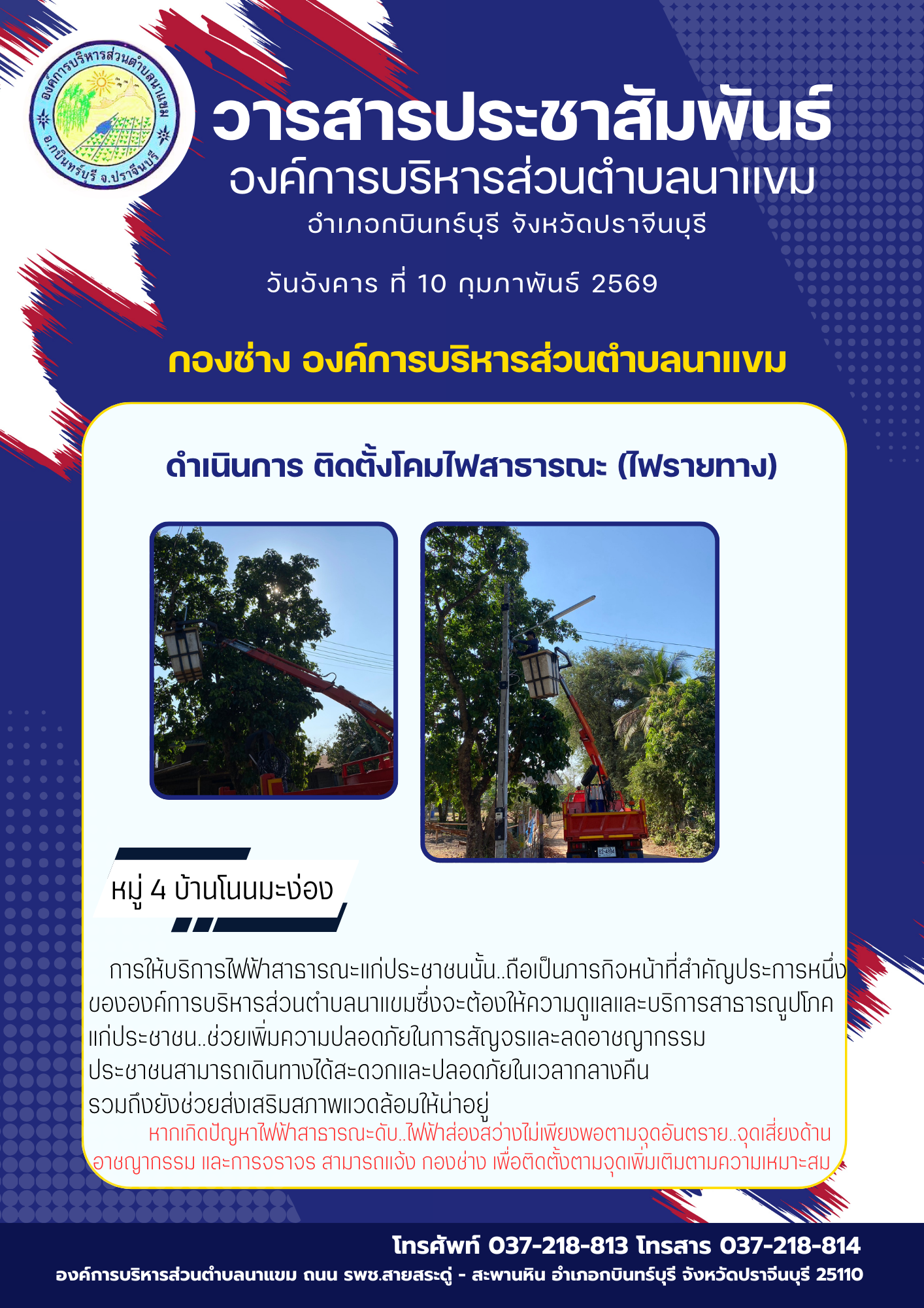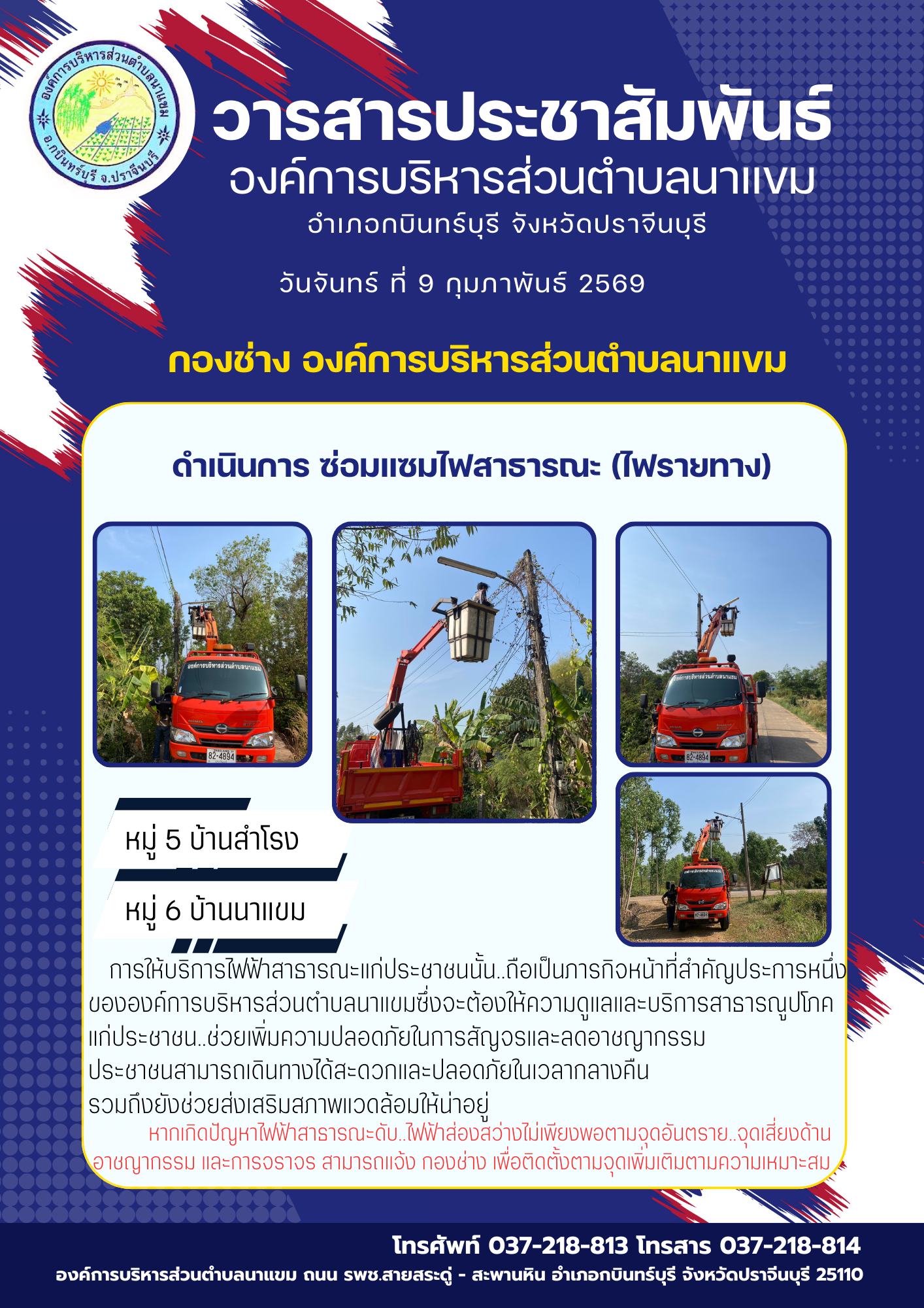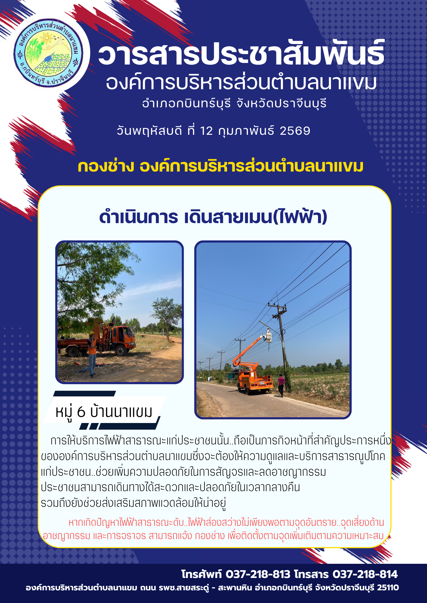 วารสารประชาสัมพันธ์ อบต.นาแขม ดำเนินการซ่อมแซมไฟฟ้...