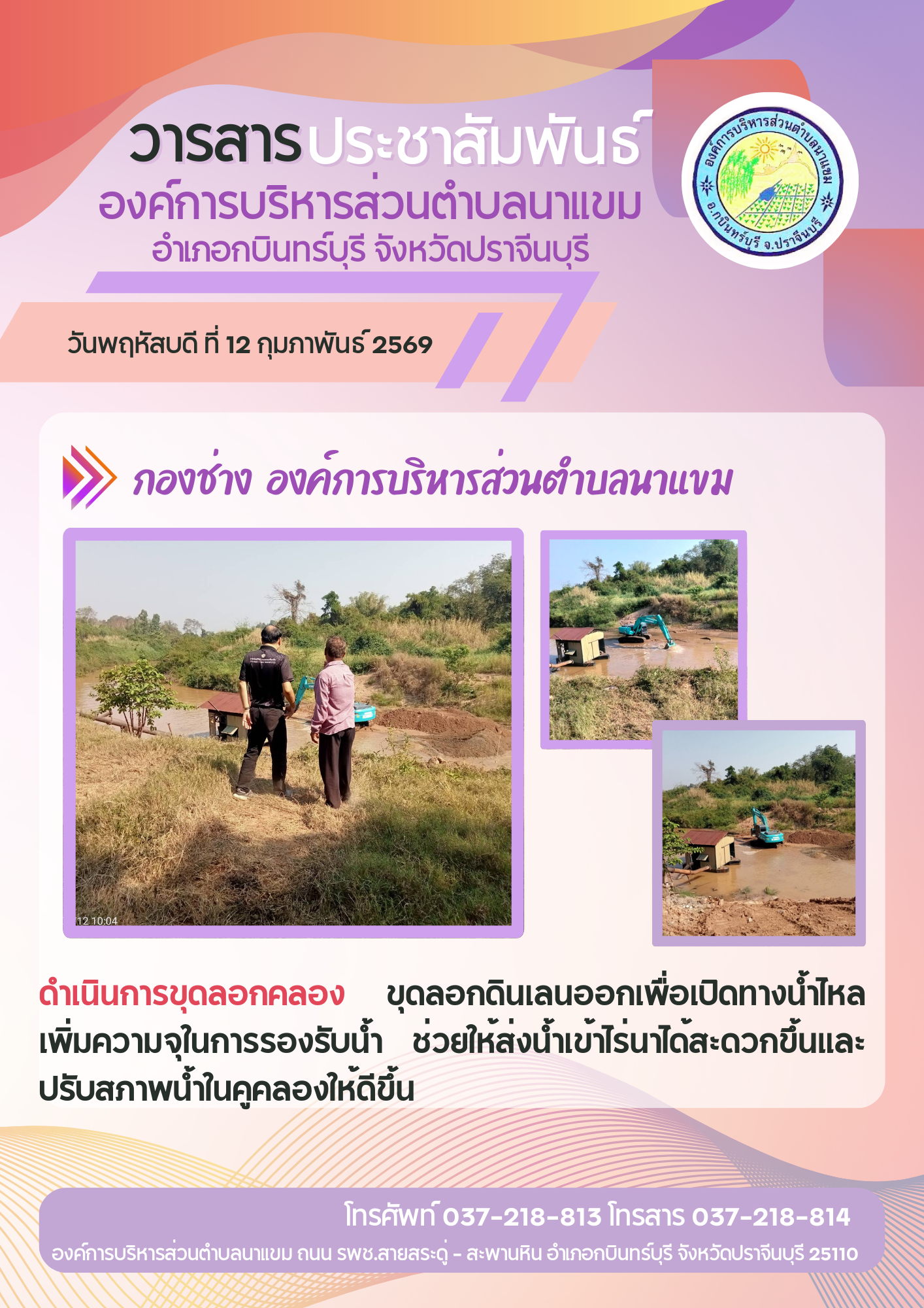 วารสารประชาสัมพันธ์ อบต.นาแขม ดำเนินการขุดลอกคลอง