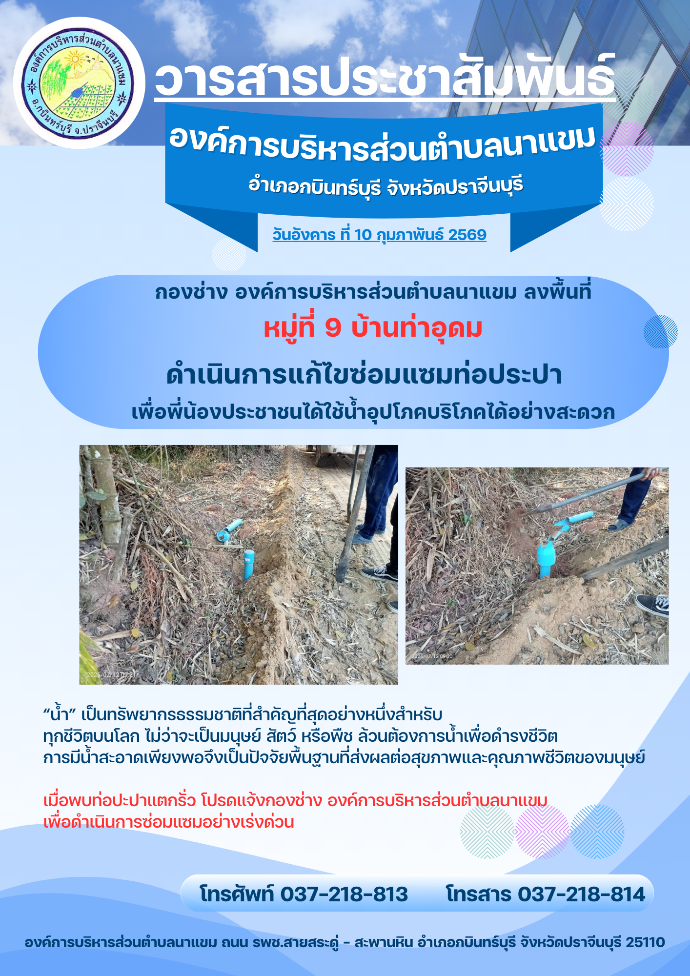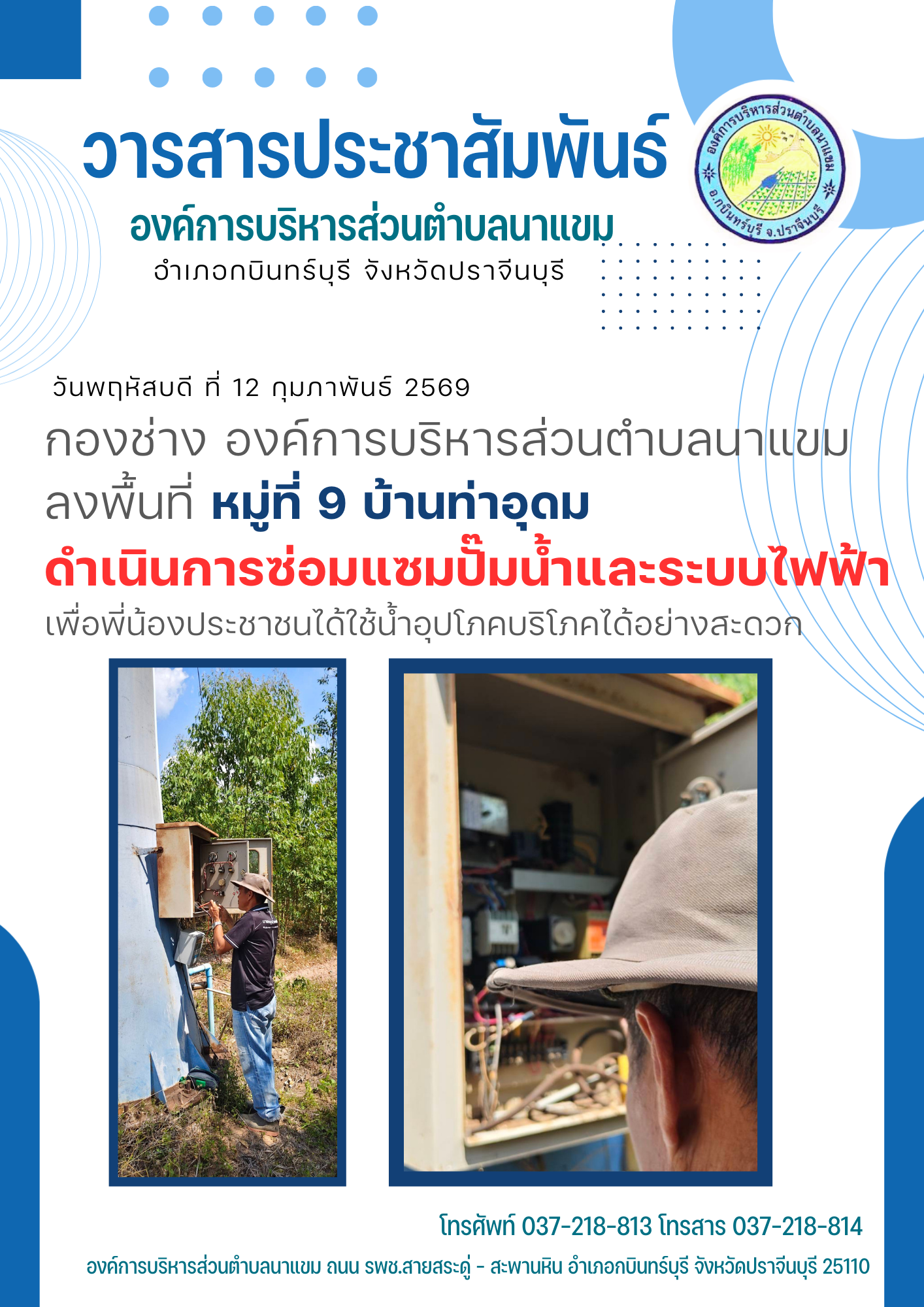 วารสารประชาสัมพันธ์ อบต.นาแขม ดำเนินการซ่อมแซมปั๊ม...
