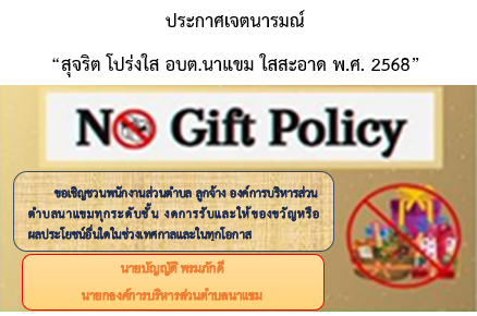 ประกาศเจตนารมณ์ No Gift Policy องค์การบริหารส่วนตำ...