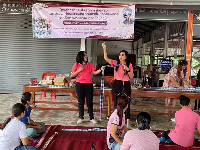 เมื่อวันที่ 22 กรกฎาคม 2568 นายบัญญัติ พรมภักดี นายกองค์การบริหารส่วนตำบลนาแขม ร่วมกับ เจ้าหน้าที่ ได้ดำเนินการจัดโครงการฝึกอบรมส่งเสริมและพัฒนาทักษะการประกอบอาชีพของผู้พิการตำบลนาแขม (หลักสูตรการทำพวงมาลัยจากผ้าขาวม้า) ประจำปี พ.ศ.2568 เพื่อเป็นการเสริมสร้างทักษะด้านอาชีพ ให้กับผู้พิการ หรือคนดูแลคนพิการหรือประชาชน ตำบลนาแขมที่สนใจ ซึ่งเป็นแนวทางหนึ่งที่จะมีกิจกรรมเสริมที่มีประโยชน์ เพื่อสนับสนุนให้มีการฝึกอบรมในการทำอาชีพเสริม โดยการใช้เวลาว่างให้เกิดประโยชน์ มีคุณค่า ลดค่าใช้จ่ายภายในครอบครัว และยังเป็นอีกหนึ่งในการเพิ่มรายได้สู่ครอบครัว ส่งผลให้เกิดเกิดการพัฒนาคุณภาพชีวิตให้ดีขึ้น อันเป็นรากฐานของการพัฒนาที่ยังยืน